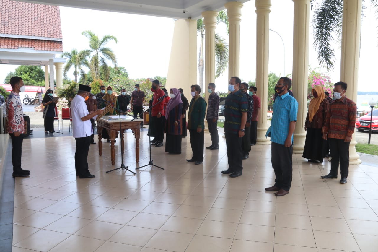 “Pengambilan sumpah jabatan dan pelantikan pejabat administrator dan pejabat pengawas, yang sifatnya dalam bentuk pengukuhan diakibatkan perubahan kelembagaan dan mutasi pejabat, melalui pertimbangan kualifikasi dan kompetensi serta jarak antara tempat tugas dan tempat domisili,” ucap ABM.