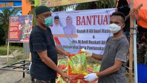 “Adapun bantuan pribadi yang diberikan adalah 100 karung beras, yang diserahkan langsung oleh team kepada pemerintah desa, disaksikan oleh Perwakilan BPBD Kabupaten Mateng, Babinsa Desa Pontanakayyang, Dinas Kesehatan, dan Kepolisian yang berjaga di Pos Gugus Covid19, Desa Pontanakayyang,” ucap Khalil Gibran.