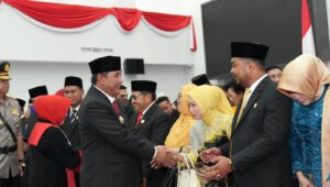 Sulbar – PJ Gubernur Sulbar Bahtiar Baharuddin, mengikuti Sidang Paripurna Istimewa Pengucapan Sumpah dan Janji Anggota DPRD Provinsi Sulawesi Barat Masa Jabatan 2024-2029, di Gedung DPRD Sulbar Kamis 26 September 2024.