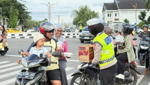 MAMUJU – Berkah bulan suci Ramadan dimanfaatkan Ditlantas Polda Sulawesi Barat untuk memadukan aksi sosial dan edukasi keselamatan berlalu lintas. Tak hanya membagikan takjil, polisi juga memberikan imbauan langsung kepada para pengendara.