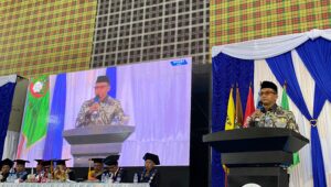 Di hadapan 300 wisudawan yang resmi dikukuhkan, Bupati Samsul Mahmud menyampaikan pesan mendalam agar para lulusan tidak berhenti berkarya setelah menyandang gelar sarjana. Ia menegaskan, wisuda bukanlah akhir perjalanan, melainkan awal dari pengabdian kepada masyarakat.