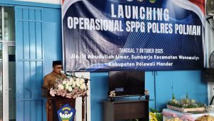 POLMAN – Bupati Polewali Mandar, H. Samsul Mahmud, menghadiri acara Launching Satuan Pelayanan Pemenuhan Gizi (SPPG) milik Polres Polman yang berada di bawah naungan Yayasan Kumala Bhayangkari. Kegiatan tersebut berlangsung di Desa Sumberjo, Kecamatan Wonomulyo, Selasa (7/10/2025), dan diresmikan langsung oleh Kapolda Sulawesi Barat, Irjen Pol Adi Deriyan Jayamarta.