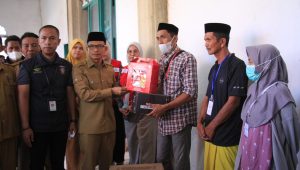 POLMAN – Bupati Polewali Mandar (Polman) Samsul Mahmud menyerahkan bantuan sosial dari Kementerian Sosial Republik Indonesia kepada penyintas kebakaran di Desa Galung Tuluk, Kecamatan Balanipa, Selasa (3/3/2026).