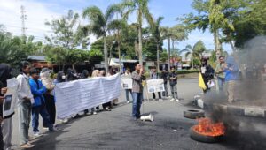 Polman – Puluhan mahasiswa dari PMII Komisariat IAI DDI, melakukan aksi unjuk rasa di depan Kantor Bupati Kabupaten Polman, Senin,19/05/25.