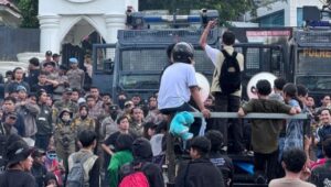 Sulbar – Aksi unjuk rasa tolak tambang pasir di Kalukku, Budong-budong dan Karossa, kembali sambangi kantor Gubernur Sulbar dan diterima berdialog dengan Wakil Gubernur Sulbar, Rabu 21/05/25.