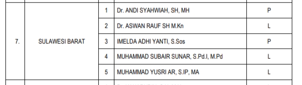 Ke lima Timsel Bawaslu tersebut yakni 1.Dr.Andi Syahwiah, SH, MH. 2. Dr.Aswan Rauf SH M.Kn. 3. Imelda Adhi Yanti, S.Sos. 4. Muhammad Subair Sunar, S.Pd.I, M.Pd. 5. Muhammad Yusri AR,S.IP,MA.