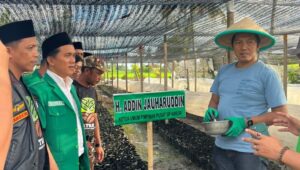 Polman – Ketua Umum PP GP Ansor, Addin Jauharudin bersama Sekjen Mabrur L Banuna dan Wakasat Kornas Banser, Zuhri Wael, mengunjungi pusat pembibitan kakao milik PW GP Ansor Sulbar, di Desa Bakka-bakka kecamatan Wonomulyo, Kabupaten Polman, Jumat, 21/06/25.