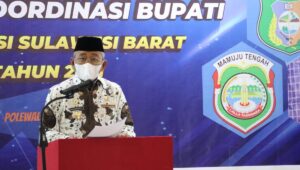 Polman – editorial9 – Gubernur Sulbar, Alibaal Masdar, membuka pelaksanaan rapat koordinasi tingkat Provinsi, bersama para Bupati Se-Sulbar, di Hotel Ratih, Kabupaten, Polman, Kamis, 08/04/21.