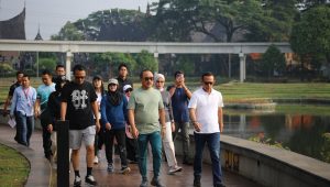 Kegiatan dimulai dengan joging santai sebagai upaya menjaga kebugaran dan memperkuat kekompakan jajaran pemerintah provinsi. Usai olahraga, rombongan bergerak menuju Anjungan Sulbar untuk memastikan kesiapan fasilitas, tampilan budaya, dan kualitas promosi daerah di kawasan wisata tersebut.