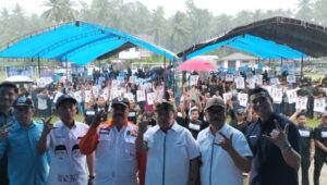 “Hari ini kita bertemu di Lapangan Katumbangan Lemo, barusan hujan deras turun. Kalau kita yakin hujan itu anugrah maka kehadiran SDK-JSM adalah anugrah bagi kita semua. Kita tunjukkan, bahwa hujan turun kita bisa solid berada disini,” ucap Syamsul.