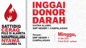 Polman – editorial9 – Ikatan alumni SMPN 1 Campalagian, Kabupaten Polman, akan melaksanakan agenda donor darah. Inisiatif ini dilakukan, lantaran melihat adanya pasien kekurangan darah hingga meninggal dunia.
