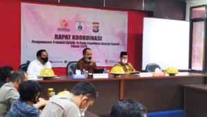 Rakor tersebut diselenggarakan, dalam rangka pengawasan terhadap penerapan Prokes pencegahan Covid19, pada Pilkada serentak 09 Desember 2020 mendatang.
