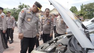 Pengecekan ini mencakup kendaraan patroli, mobil operasional, hingga sepeda motor Bhabinkamtibmas yang setiap hari digunakan untuk menjangkau wilayah pedesaan dan memberikan layanan cepat kepada warga.