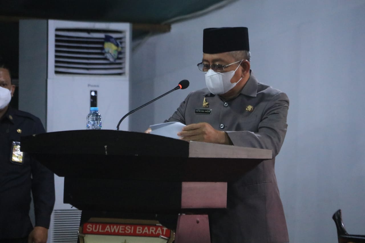 Mamuju – editorial9 – Gubernur Sulbar, Alibaal Masdar (ABM), secara resmi menyerahkan Laporan Keterangan Pertanggungjawaban (LKPJ) Gubernur Tahun Anggaran 2020, ke Wakil Ketua DPRD Sulbar, Usman Suhuriah, yang disaksikan oleh Wakil Ketua II DPRD Sulbar, Abdul Halim, dalam forum Rapat Paripurna, di Kantor sementara DPRD Sulbar,Selasa, 06/04/21.