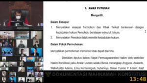 “Dalam pokok permohonan, menyatakan permohonan pemohon tidak dapat diterima,” ucap Anwar Usman.