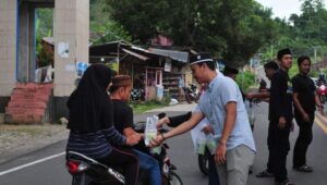 Mamuju – editorial9 – PC PMII Mamuju, menggelar aksi sosial dengan berbagi takjil, ke para pengguna jalan dan musafir yang melintas di jalan trans Sulawesi, di Mamuju, Minggu, 17/04/22.
