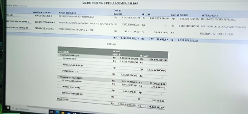 “Anggaran 3,3 itu ada pencairannya melalui rekening pribadi, nah itu yang direkomendasikan oleh pihak pansus untuk dikembalikan, karena itu menyalahi konsep bantuan dari donatur-donatur. Sisa, anggaran sekarang ini 1,2 miliar yang akan dialihkan ke Kas daerah, ini juga menjadi pertanyaan bahwa kalau sudah masuk ke Kas daerah, itu prosedurnya begitu sulit karena harus melalui SP2D,” tutupnya.