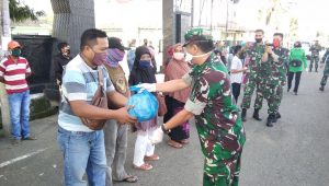 Mamuju – editorial9 – Sebagai bentuk kepedulian terhadap dampak dari wabah virus corona (Covid-19), jajaran personil Kodim 1418/Mamuju, menggelar aksi bagi – bagi sembako, Jum’at,17/04/20.