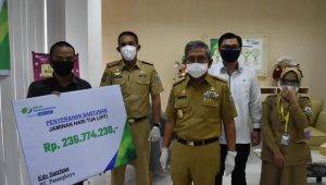 Sedangankan, bagi petugas medis RSUD Regoinal Sulbar, bantuan diterima langsung oleh Direktur RSUD Regional Sulbar, Indahwati Nursyamsi.Sedangkan, santunan JHT diberikan kepada dua orang, yakni Delfianus Palo dari PT. Nusa Halmahera Minerals sebesar Rp. 105.531.570 juta dan Edy Sutrisno dari PT. Pasangkayu sebesar Rp. 236.774.230 juta.