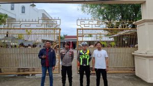 MAMUJU — Aparat kepolisian dari Polresta Mamuju bersama jajaran Polsek melakukan pengamanan ketat di sejumlah gereja di wilayah Mamuju saat peringatan Jumat Agung, Jumat (3/4/2026). Langkah ini dilakukan untuk memastikan umat Kristiani dapat beribadah dengan aman dan nyaman.