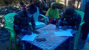 “Alhamdulillah, hari ini tim vaksinator yang sementara melaksanakan serbuan vaksin di dua lingkungan yang ada di Kelurahan Bebanga. Masyarakat antusias dalam mengikuti serbuan vaksin,” ucap Kolonel Inf Tri Aji Sartono, saat dikonfirmasi usai memantau pelaksanaan vaksinasi tersebut, Sabtu, 06/11/21.