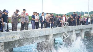 Sulbar – Penjabat Gubernur Provinsi Sulawesi Barat Bahtiar Baharuddin bersama Forkopimda Sulbar melakukan penurunan media karang buatan di perairan Teluk Mamuju, Kamis 16 Januari 2025.