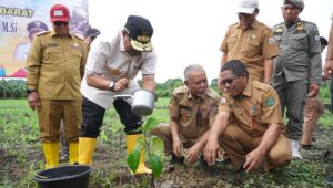 Saat penanaman bibit sukun Pj Gubernur Sulbar Bahtiar ditemani Sekprov Sulbar Muhammad Idris Dandim Pasangkayu, perwakilan Polres Pasangkayu, jajaran Pemprov Sulbar dan jajaran pejabat Pemkab Pasangkayu serta para Camat se Kabupaten Pasangkayu.