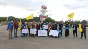 Pasangkayu – editorial9 – Pergerakan Mahasiswa Islam Indonesia (PMII) Cabang Pasangkayu, menggelar aksi damai, di Bundaran Smart Pasangkayu, Senin,16/11/20.