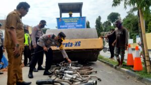 Pemusnahan tersebut, dilakukan dengan cara menggilas menggunakan alat berat, yang disaksikan langsung oleh Kapolres Majene, Sekda Majene, yang mewakili Dandim 1401 Majene, Dinas Perhubungan, BPBD dan tamu undangan lainnya.