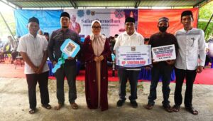 Dalam kesempatan itu, selain menyerahkan bantuan rumah ibadah senilai Rp.590 juta, Sutinah juga menyalurkan paket ramadhan hasil donasi pribadi pimpinan daerah dan kepala OPD serta dari Kepala Desa (Kades).