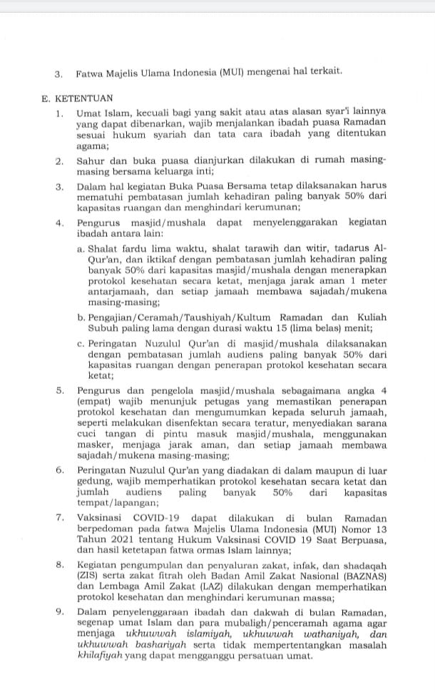 “Untuk lebih lanjut, panduan ibadah ramadan dan idul fitri tertuang dalam Surat Edaran Menteri Agama Nomor 03 Tahun 2021. Terdapat 11 ketentuan dalam edaran tersebut,” tutupnya. (*)