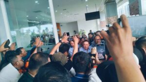Sulbar – Ketua Bappilu DPW Partai Demokrat Provinsi Sulbar, Sukri Umar, angkat bicara terkait hadirnya ribuan massa yang menyambut kedatangan pasangan Suhardi Duka-Salim S.Mengga di Bandara Tampa Padang, Kabupaten Mamuju, Minggu, 04/08/24.