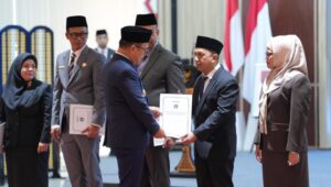 Penunjukan tersebut ditandai dengan penyerahan Surat Perintah Tugas dalam acara Pengambilan Sumpah Jabatan dan Pelantikan Pejabat Pimpinan Tinggi Pratama lingkup Pemprov Sulbar, yang digelar di Ballroom Andi Depu, Lantai 3 Kantor Gubernur Sulbar, Jumat (18/7/2025).