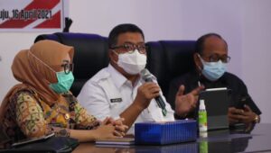 Mamuju – editorial9 – Sekprov Sulbar, Muhammad Idris, menghadiri kegiatan konsultasi publik rancangan awal, Rencana Pembangunan Jangka Menengah Daerah (RPJMD), Kabupaten Mamuju Tahun 2021-2026, di Rujab Bupati Mamuju (Sapota), Jumat,16/04/21.