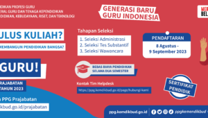 Sulbar – editorial9 – Kemendikbudristek Dirjen guru dan tenaga kependidikan yang dikoordinasi oleh Direktur pendidikan profesi guru, kembali membuka pendaftaran seleksi Pendidikan Profesi Guru (PPG) prajabatan tahun 2023.