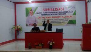 Sulbar – editorial9 – Badan Penyelenggara Jaminan Sosial (BPJS) Ketenagakerjaan menggelar sosialisasi kepesertaan bersama Anggota komisi XI DPR-RI Andi Ruskati Alibaal, di Mamuju, Jumat, 31/03)23.