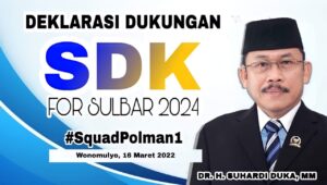Polman – editorial9 – Dukungan masyarakat Kabupaten Polman, ke Suhardi Duka (SDK) untuk maju di Pilgub Sulbar 2024 terus mengalir. Setelah sejumlah komunitas yang tergabung dalam relawan Polman Dua, kini giliran aliansi yang tergabung dalam Squad Polman Satu (I), dijadwalkan akan ikut menggelar deklarasi dukungan.