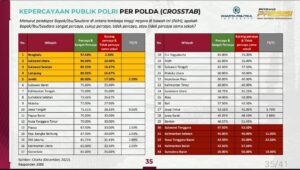 Sulbar – editorial9 – Indonesia Charta Politika (ICP), merilis hasil survey tingkat kepercayaan masyarakat terhadap kinerja aparatur kepolisian, Kamis, 22/12/2022 lalu.