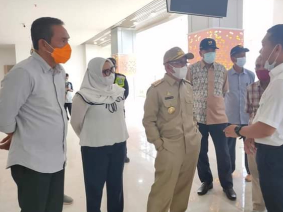 Gubernur Sulbar, Alibaal Masdar, bersama Ketua DPRD Sulbar, Suraidah Suhardi, saat meninjau pembangunan terminal bandara Tampa Padang.
