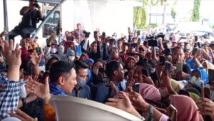 Sebelum bertolak ke Mamuju, AHY disambut ribuan warga yang mengelukan dan berteriak AHY untuk Republik Indonesia, AHY untuk perubahan, Anies-AHY untuk Presiden dan Wakil Presiden.